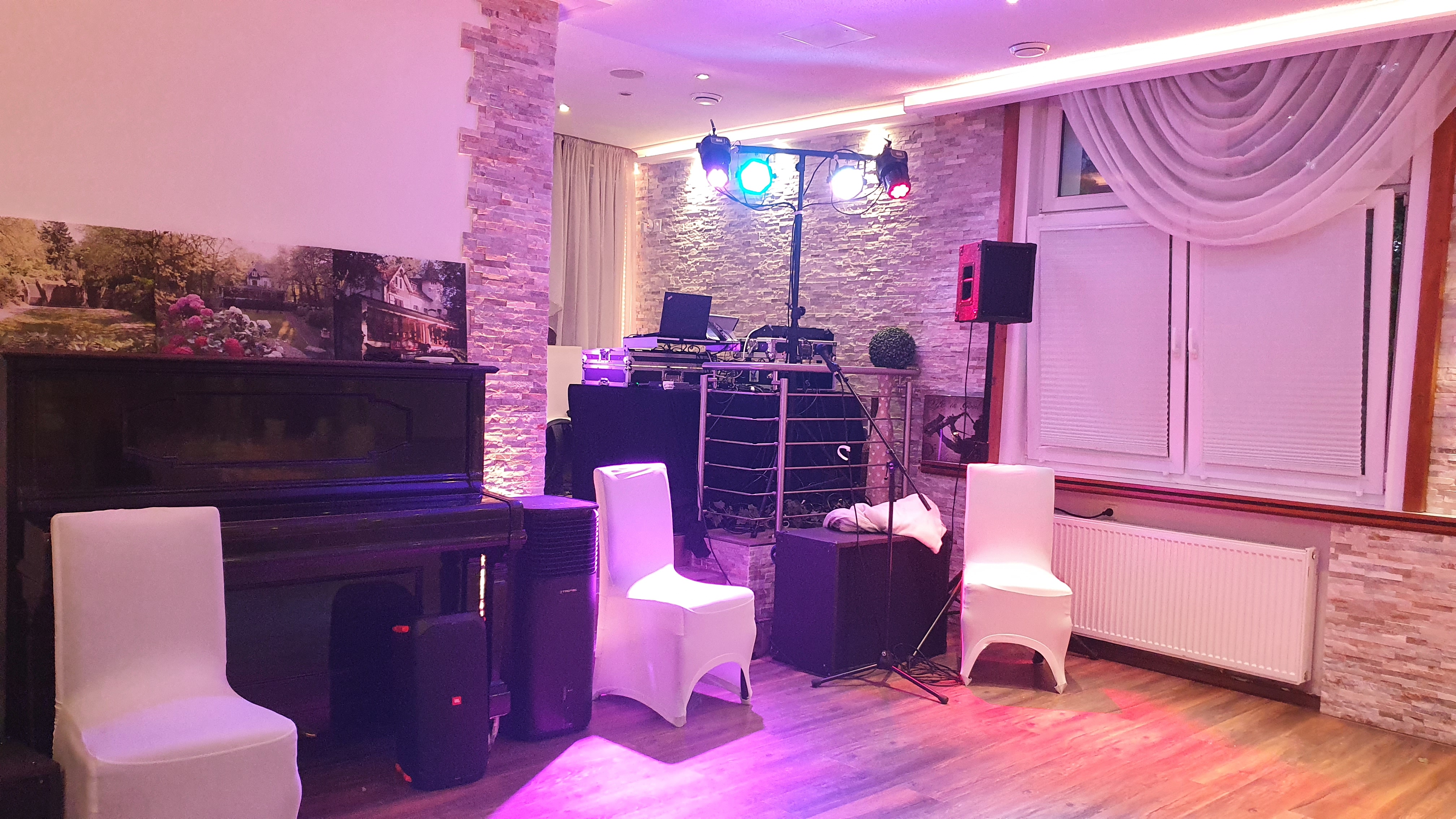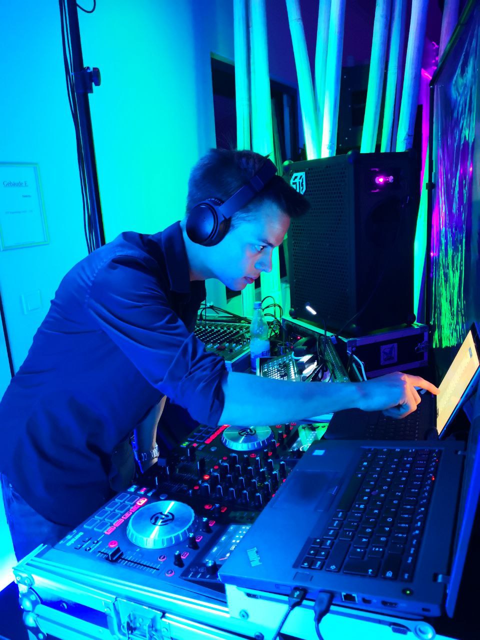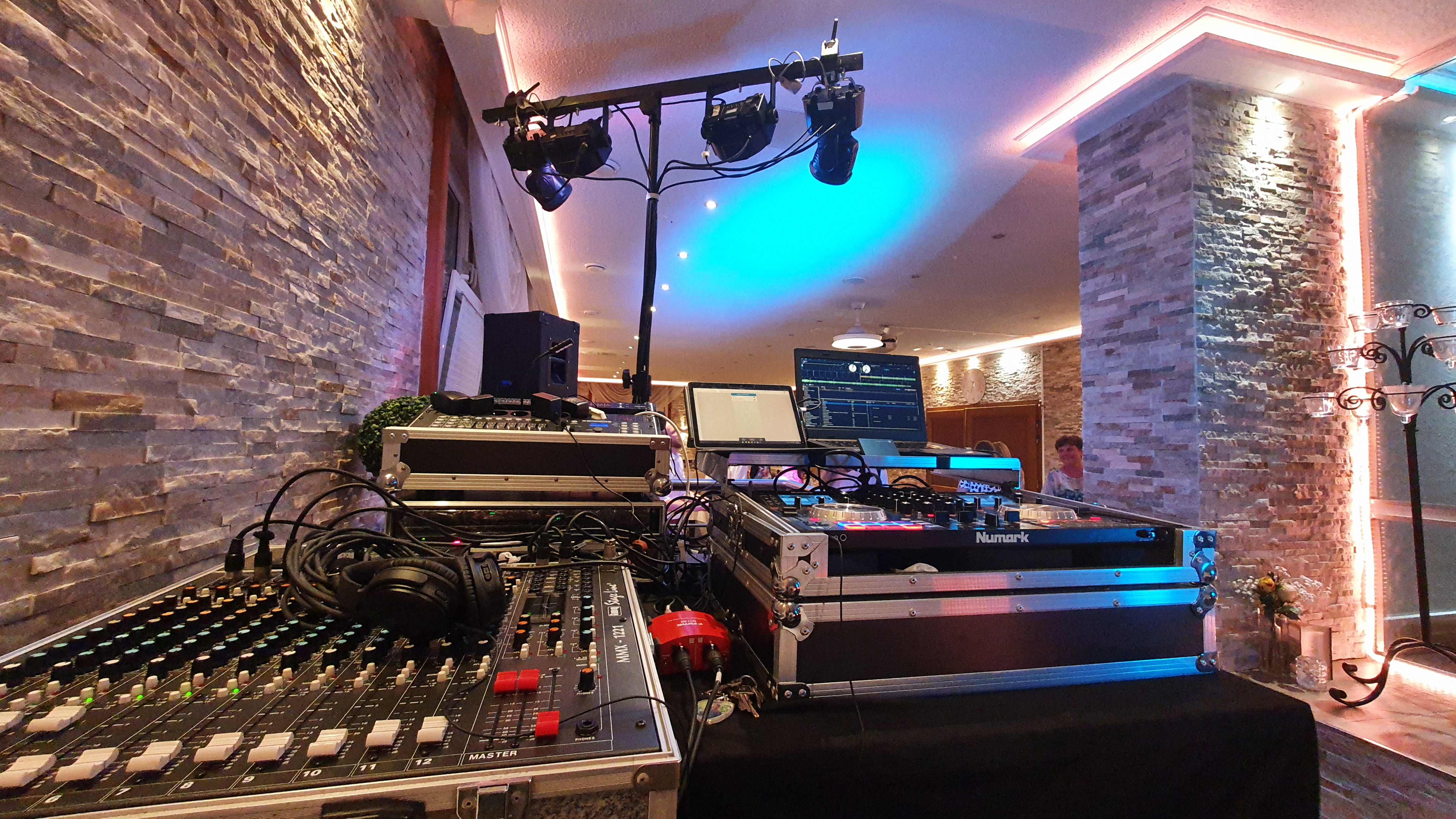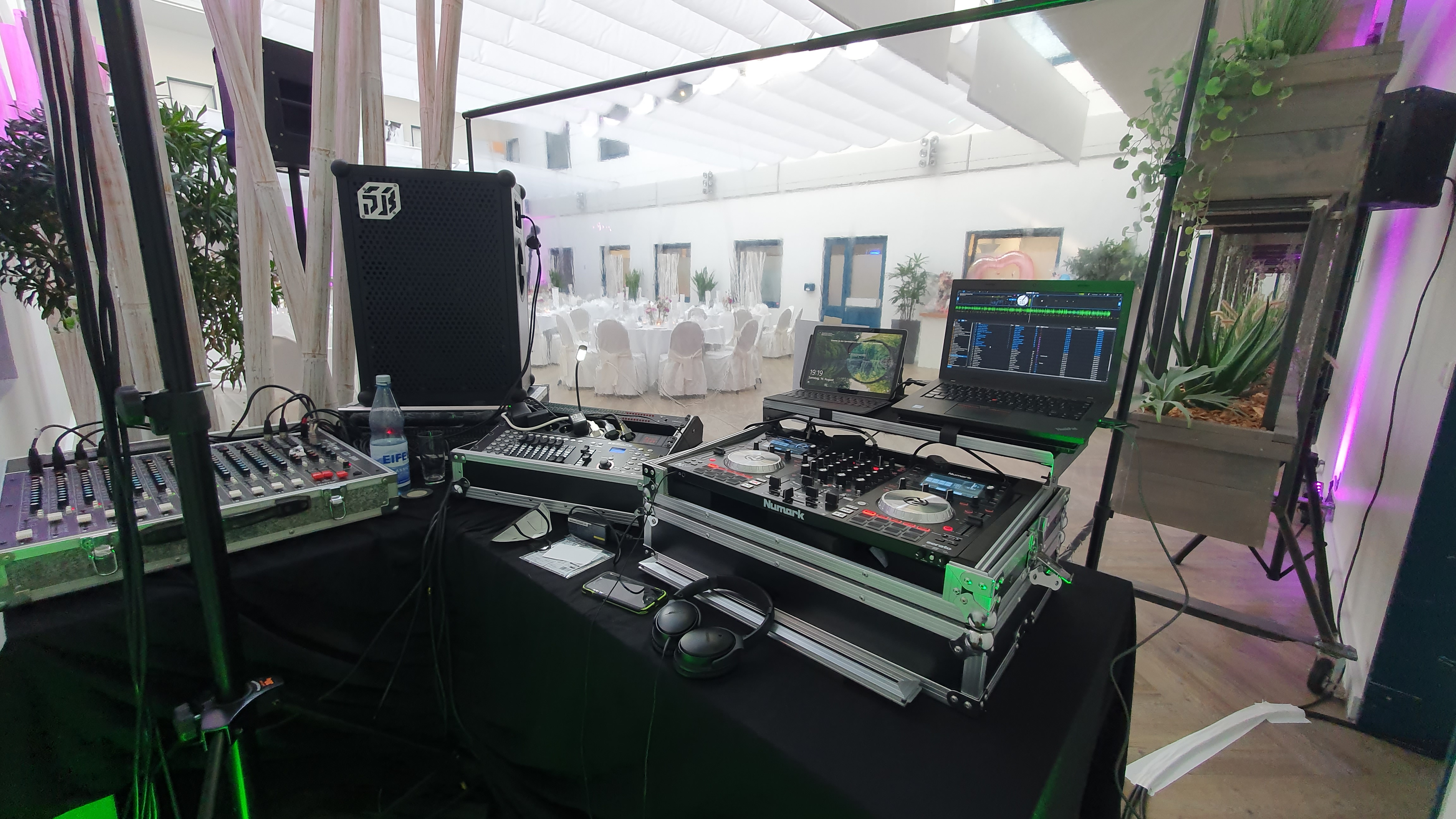 Planen Sie eine Hochzeit, einen Geburtstag oder eine andere Veranstaltung? Benötigen Sie nur die Veranstaltungstechnik oder auch einen DJ? Für jeden Wunsch lässt sich eine Lösung anbieten. Standardmäßig gibt es im Angebot eine PA (Musikanlage) für ca. 100m² Tanzfläche, ein paar Movingheads und auch etwas Nebel oder Haze.